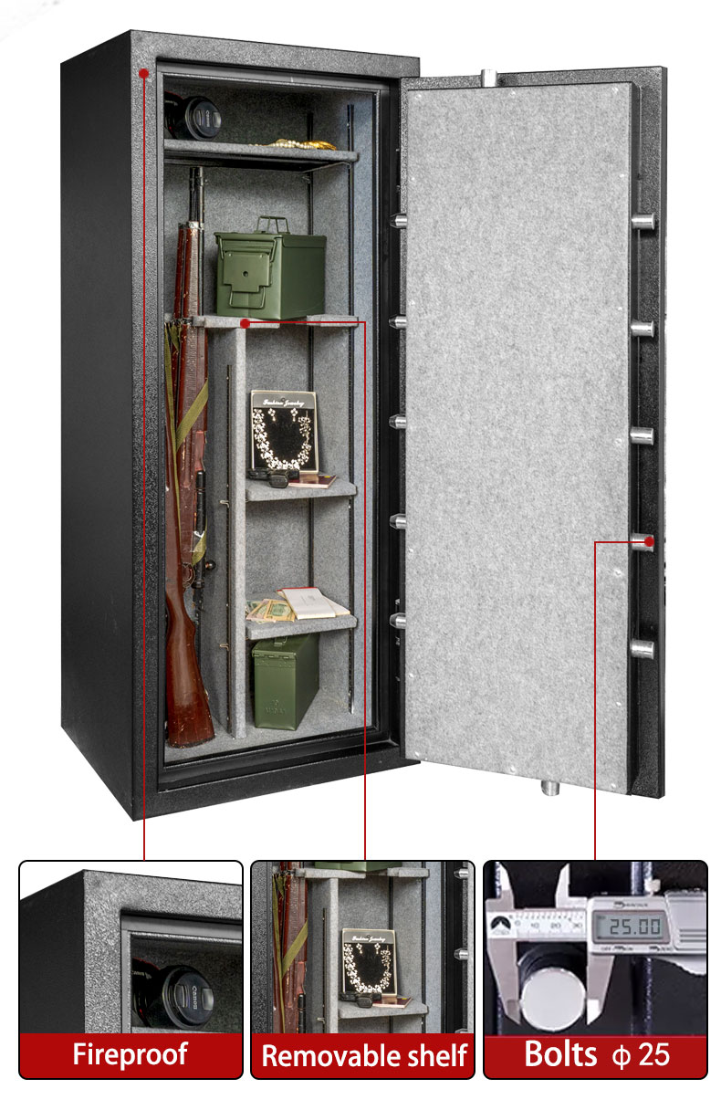 Elevate your firearm protection with the Proway Electronical Gun Safe—an exquisite blend of strength, accessibility, and vigilance. Redefine the way you safeguard your firearms, accessories, and valuables, confident in the knowledge that each item is guarded by an unwavering sentinel. Welcome an era of security into your space, where your peace of mind takes center stage.