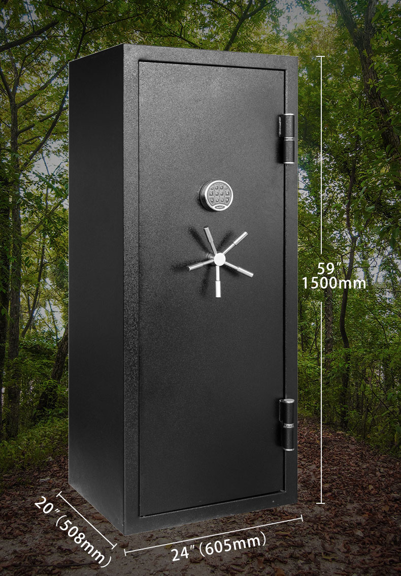Embrace spaciousness with a larger and deeper rifle safe that accommodates up to 5 rifles, each up to 51" long. Unparalleled security is woven into the very fabric of this safe, with a 1.2" thick door fortified by a 5/8" diameter locking steel deadbolts system. Seven steel live-action locking bolts and the electronic keypad ensure your items remain inaccessible to the wrong hands.